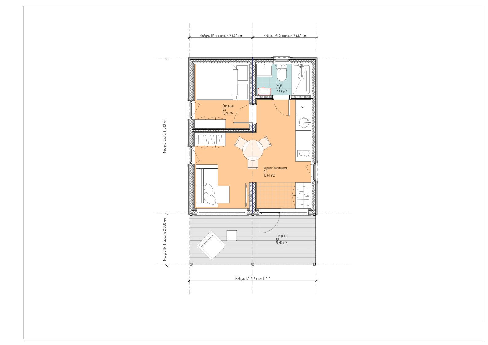 Scandi 40 это уже полноценный семейный дом: просторная кухня-гостиная, отдельная спальня, санузел и место для всего, что важно. Идеален для семьи с ребёнком, для постоянного проживания за городом или как основной дом на участке